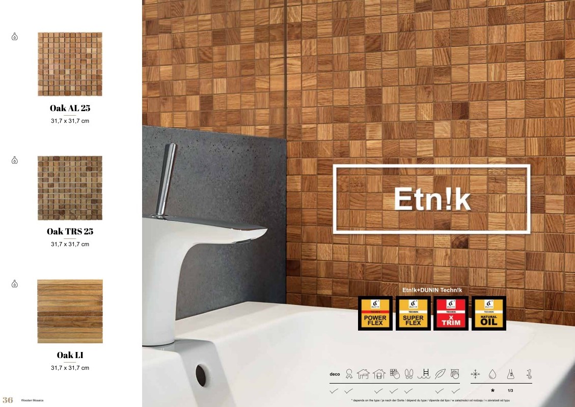 RADA TECHN!KA: mozaika drewniana Etn!k wykonana jest z naturalnego, impregnowanego we wczesnej fazie produkcji, litego drewna. Mozaika bambusowa Etn!k wykonana jest z